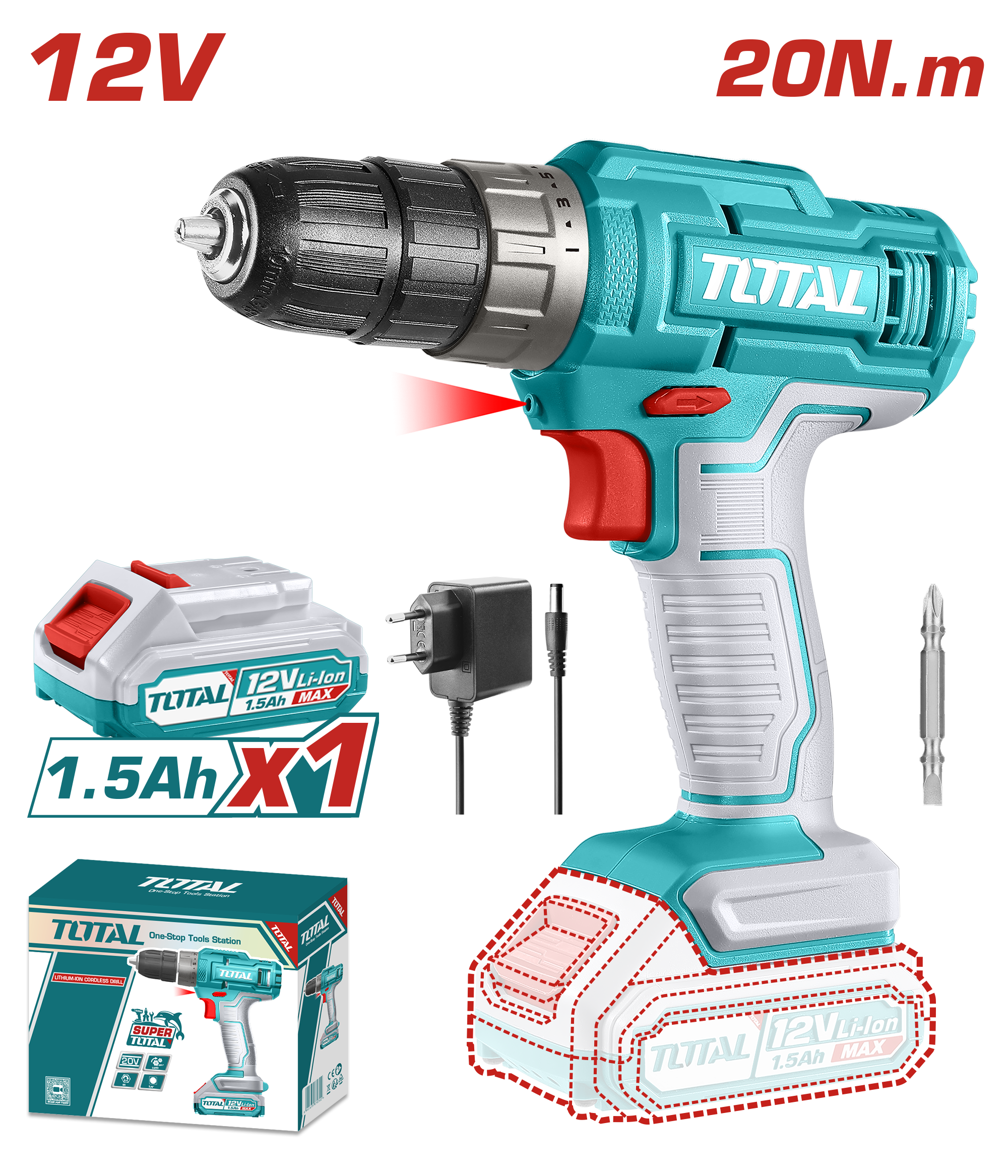 دريل بطارية ليثوم 12 فولت توتال TDLI1218